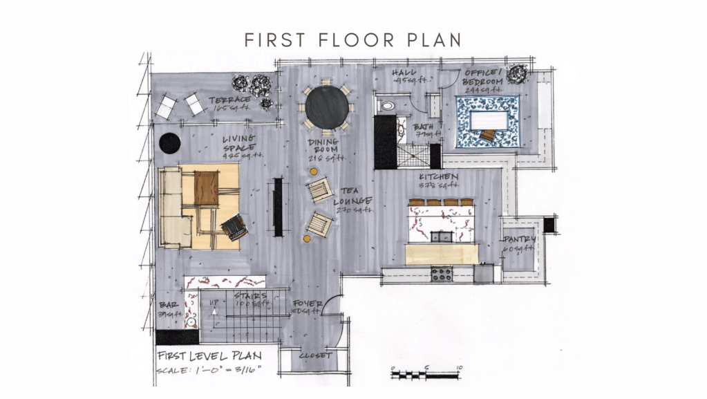 In the first studio class, we focused on residential design in an intensive five-week summer course. I was instructed to design and configure approximately 4,000 square feet in an existing apartment building located in the heart of Atlanta. Each person in my class was assigned clients with very specific requests, which created many challenges when it came to designing. This studio introduced me to conceptualization and its implementation.