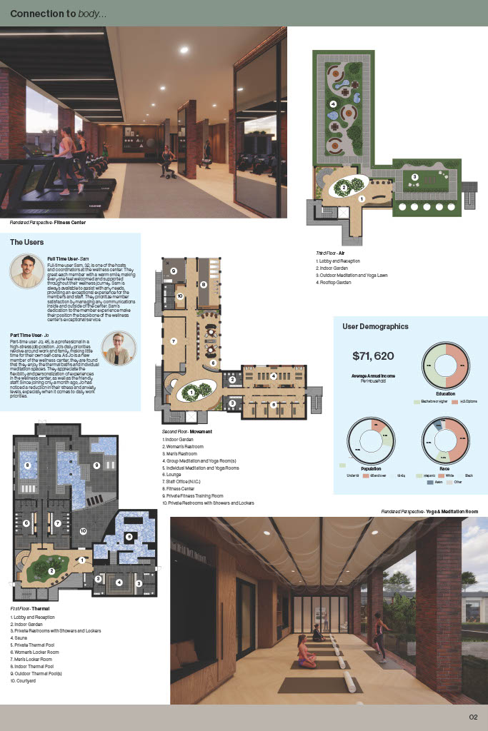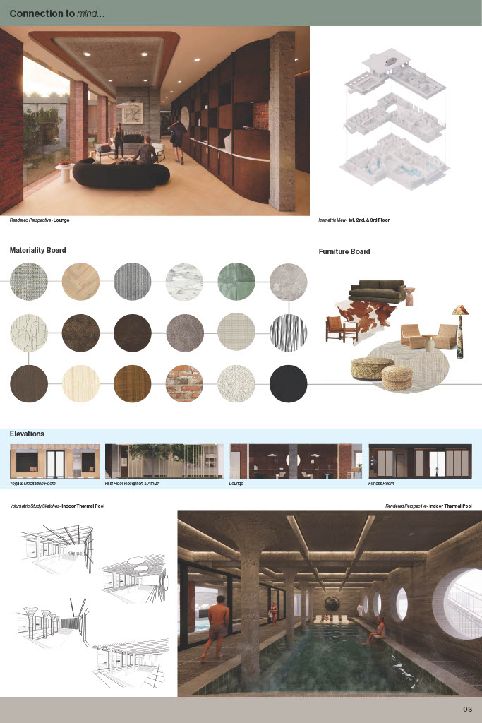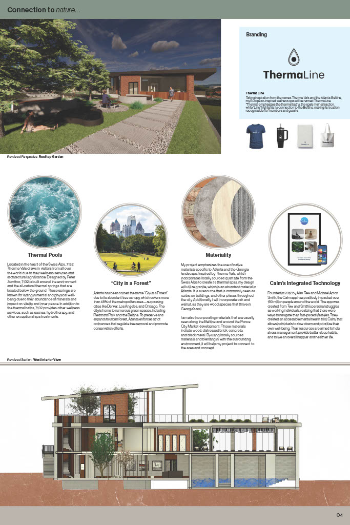 During my Fall and Winter 2025 quarters at SCAD, I completed my final capstone studio, focusing on designing a wellness spa for busy individuals seeking an escape from this fast-paced world. Inspired by the European spa tradition, I modeled my project after 7132 Therme Vals in Switzerland, emphasizing the use of thermal baths that support the well-being of both the body and mind. Below, you’ll find my final presentation boards and renderings, with a full in-depth process book available to download.